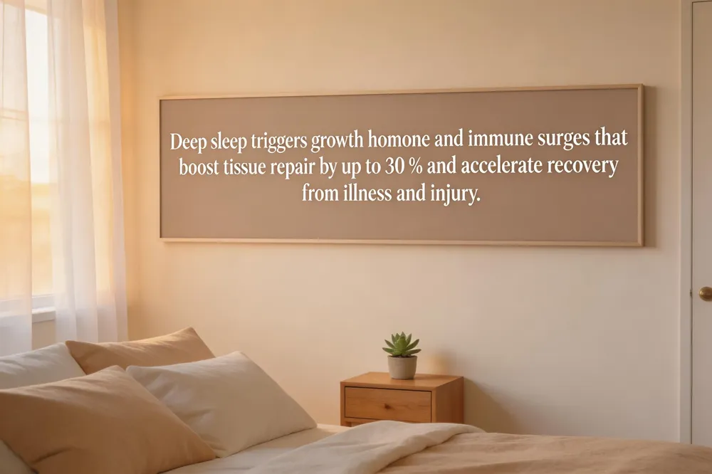 How much faster does your body heal when sleeping? Deep sleep can accelerate tissue repair by ~30 % and improve hormone balance, making recovery from injury or surgery noticeably quicker.