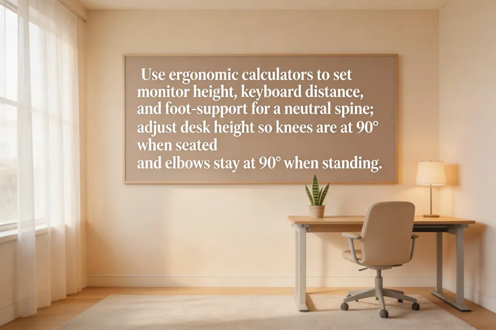 Ergonomic calculators let you input height, desk depth and monitor size to receive personalized recommendations for monitor height, keyboard distance and foot‑support options, ensuring a neutral spine and reducing lower‑back load.