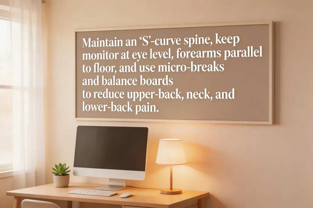 Do standing desks actually help posture? Yes. Proper ergonomics (monitor at eye level, elbows at 90°) combined with micro‑breaks (20‑30 min) increase craniovertebral angle and reduce neck‑shoulder fatigue.