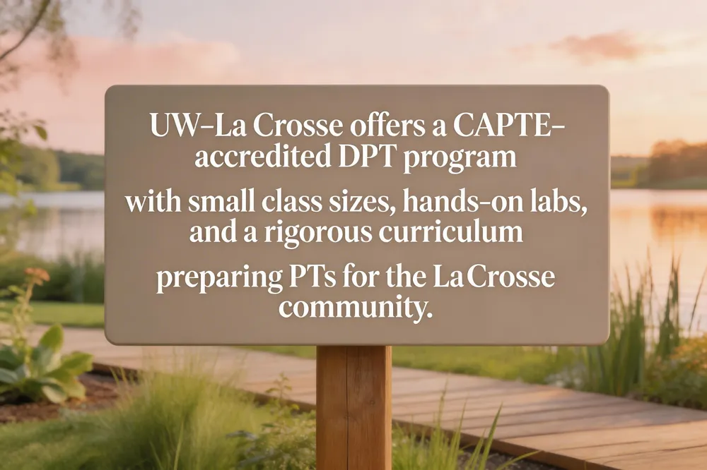 Yes, the University of Wisconsin‑La Crosse offers a nationally accredited Doctor of Physical Therapy (DPT) program (CAPTE). The [34‑month] curriculum blends classroom instruction with extensive hands‑on learning—labs, fieldwork, and clinical internships while keeping [class sizes small] for personalized feedback. Admission is competitive; applicants must complete ten prerequisite courses (biology, anatomy, physiology, chemistry, physics, statistics, psychology, and sociology/anthropology) with at least a C grade, maintain a 3.0 overall GPA, submit GRE scores (minimum 143 Verbal, 143 Quantitative, 3.0 AW), and provide transcripts, recommendation letters, and a personal statement. Roughly 28 % of candidates are accepted each cycle, reflecting the program’s emphasis on low faculty‑to‑student ratios and high academic standards. Tuition follows UW‑La Crosse’s graduate schedule—approximately $1,350 per credit hour for Wisconsin residents—resulting in an estimated $135,000 base cost for the 100‑credit DPT, before scholarships or aid. Graduates earn a doctoral degree that qualifies them for the National Physical Therapy Examination and a career as a licensed PT, ready to serve the La Crosse community and beyond.