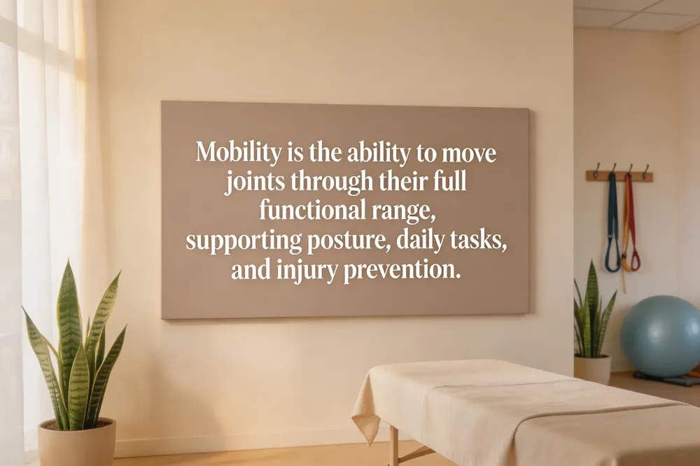 Mobility is the ability to move a joint—or a series of joints—through its full, pain‑free range of motion while maintaining control. It blends joint range, muscle flexibility, coordination, and strength into one functional skill. Good mobility underpins everyday tasks such as walking, climbing stairs, bending to tie shoes, and reaching for a shelf. When mobility declines, simple activities become laborious, and the risk of sedentary habits rises, contributing to chronic conditions like cardiovascular disease, diabetes, obesity, and joint degeneration. Mobility differs from flexibility, which focuses mainly on muscle length, and from static stretching, which holds a position without active control. Stability is the ability to hold a joint steady, whereas mobility requires the joint to move actively with stability. Together, these components create a balanced movement system that protects tissues, enhances performance, and supports long‑term health. Prioritizing mobility today helps preserve independence and reduces injury risk tomorrow.