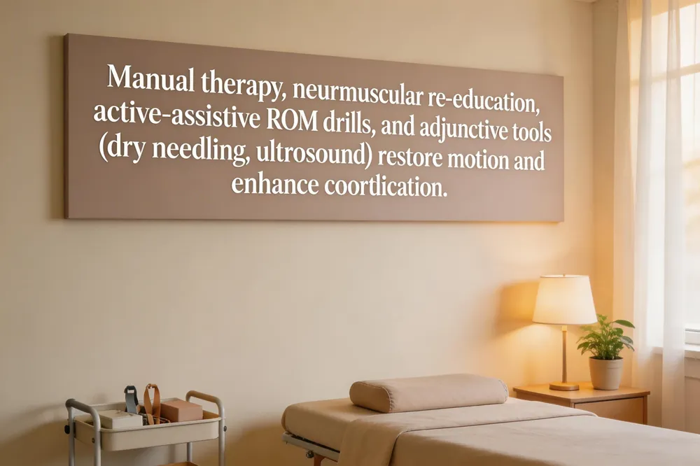 Physical therapists use a blend of hands‑on and exercise‑based interventions to restore joint range of motion and functional movement. Manual therapy—including joint mobilization, soft‑tissue release, and myofascial release—targets capsular restrictions and tight muscles, reducing pain and preparing tissues for active work. Neuromuscular re‑education, often paired with proprioceptive neuromuscular facilitation (PNF), patterns retrains the brain‑body connection so that muscles fire in the correct sequence and timing, enhancing coordination and joint control. Therapeutic exercise modalities progress from active‑assistive range‑of‑motion (ROM) drills to fully active ROM and strengthening through the complete motion arc, ensuring muscles can support movement under load. Adjunctive tools such as dry needling, instrument‑assisted soft‑tissue mobilization, and therapeutic ultrasound further decrease muscle hypertonicity and improve tissue glide, accelerating recovery. Finally, balance and gait training, plus functional task practice (e.g., sit‑to‑stand, stair climbing), translate gains into everyday activities, building confidence and reducing fall risk. Consistent, individualized programs—often delivered 2–3 times per week and reinforced with home exercises—lead to measurable improvements in mobility and overall quality of life.