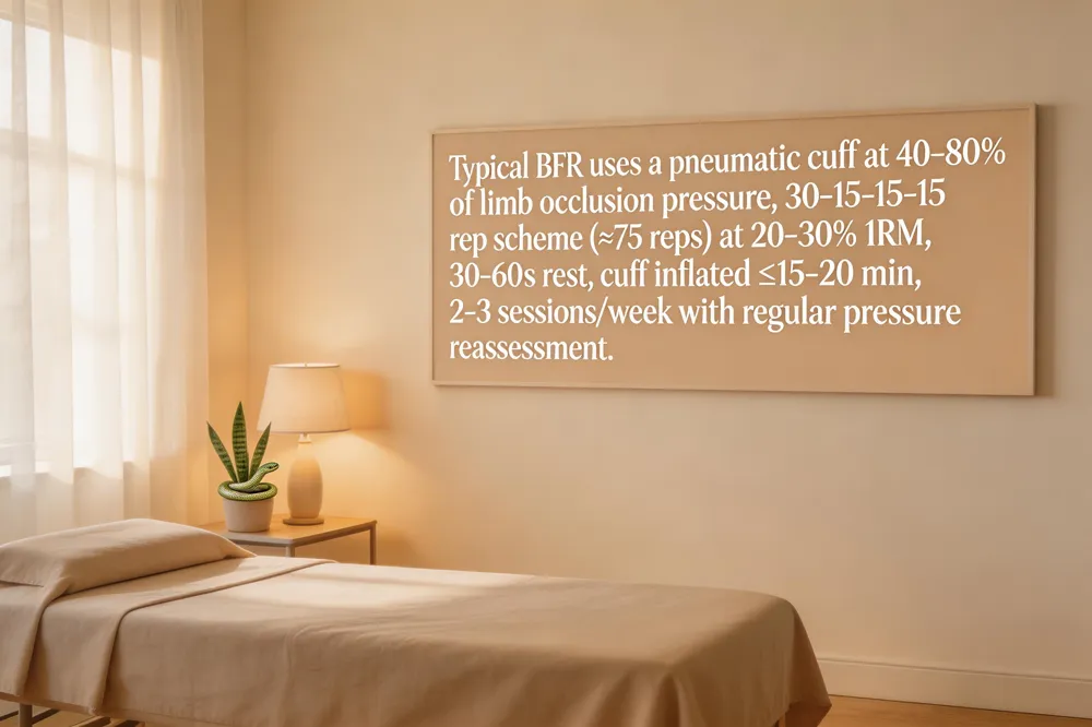 Weekly frequency – Most evidence supports 2‑3 supervised BFR sessions per week. This cadence allows enough stimulus for hypertrophy and strength while providing adequate recovery, especially for post‑operative or pain‑limited patients. Beginners may start with two sessions and progress to three as tolerated.