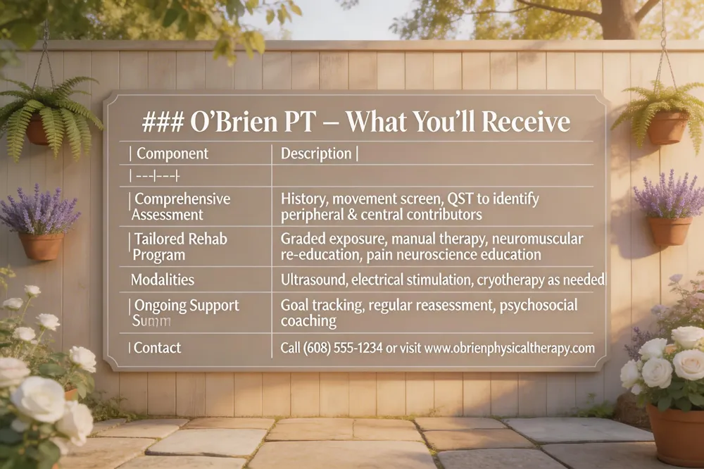 Contact Information – Call (608) 555‑1234 or visit www.obrienphysicaltherapy.com to schedule your initial evaluation. Our friendly staff will help you start a personalized pathway toward lasting pain relief and optimal wellness.