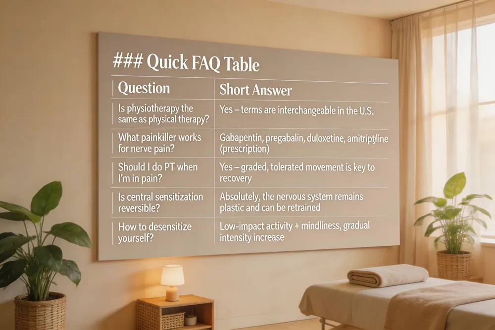 Is central sensitization reversible? – Absolutely. The nervous system remains plastic. Targeted graded exposure, gentle movement, pain‑reprocessing therapy, and education can normalize hyper‑excitable pathways.