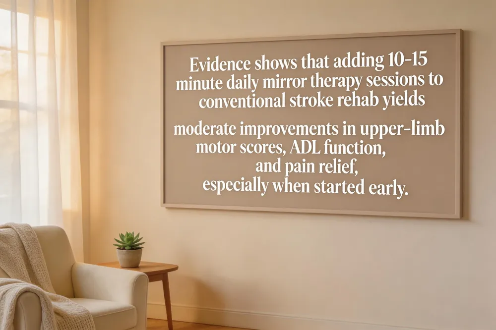 Mirror therapy neuroplasticity: MT leverages neuroplasticity by providing visual feedback that activates the mirror‑neuron system, prompting the brain to reorganize motor pathways for the impaired limb. The illusion of the affected limb moving, generated by the reflection of the healthy side, induces cortical activation similar to actual movement, facilitating synaptic strengthening and rewiring. Repetitive, task‑specific exercises performed while watching the mirror promote use‑dependent plasticity and can diminish maladaptive inhibition of the affected hemisphere. Clinical research in stroke and severe hemiparesis demonstrates that this low‑risk intervention improves upper‑extremity function, reduces pain, and enhances sensory perception. Incorporating MT into a personalized rehabilitation program offers an accessible, evidence‑based method to accelerate functional recovery.